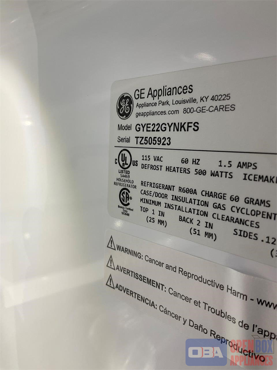 GE REFRIGERATOR (GYE22GYNKFS)