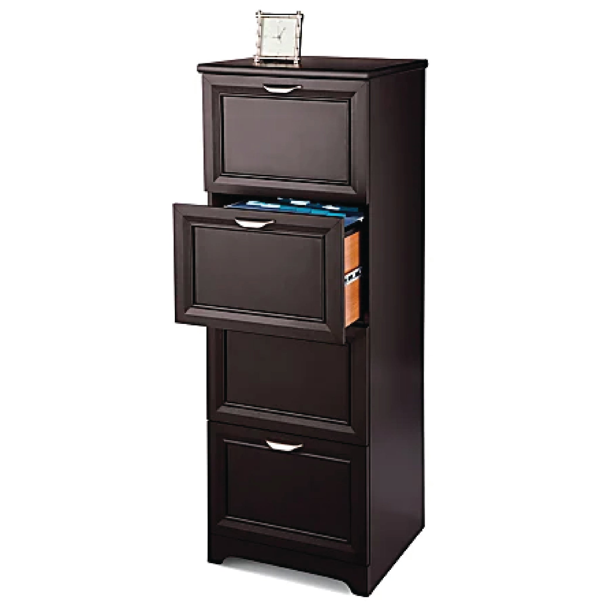 Complement your home office decor with this Realspace Magellan collection vertical file cabinet. Crafted engineered wood materials delivers an attractive solid piece, while the 4 drawers accommodate both letter-size and legal-size files for versatile use. This Realspace Magellan 4-drawer file cabinet boasts a sturdy build for lasting strength and stability.